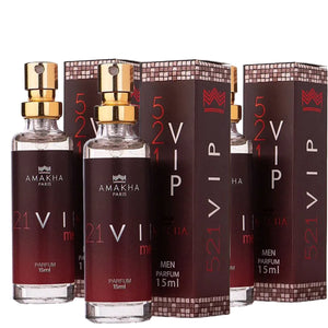 🔥 Kit Perfume Masculino 521 VIP Men Amakha Paris 3x15ml - Amadeirado Ambarado