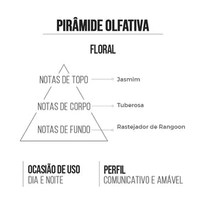 Uma fragrância encantadora que combina notas florais sofisticadas, refletindo a feminilidade e graciosidade da mulher moderna.