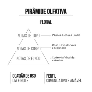 É uma fragrância floral sofisticada e delicada, perfeita para mulheres que valorizam elegância, leveza e feminilidade.