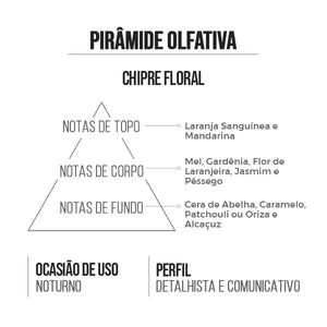 Chipre Floral – uma combinação perfeita entre sofisticação e doçura, com toques cítricos e adocicados que tornam essa fragrância irresistível.