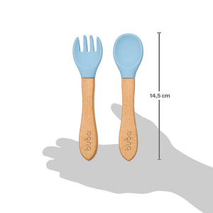 Kit Alimentação Buba - Prato de Silicone com Ventosa e Talheres de Bambu e Silicone - Azul